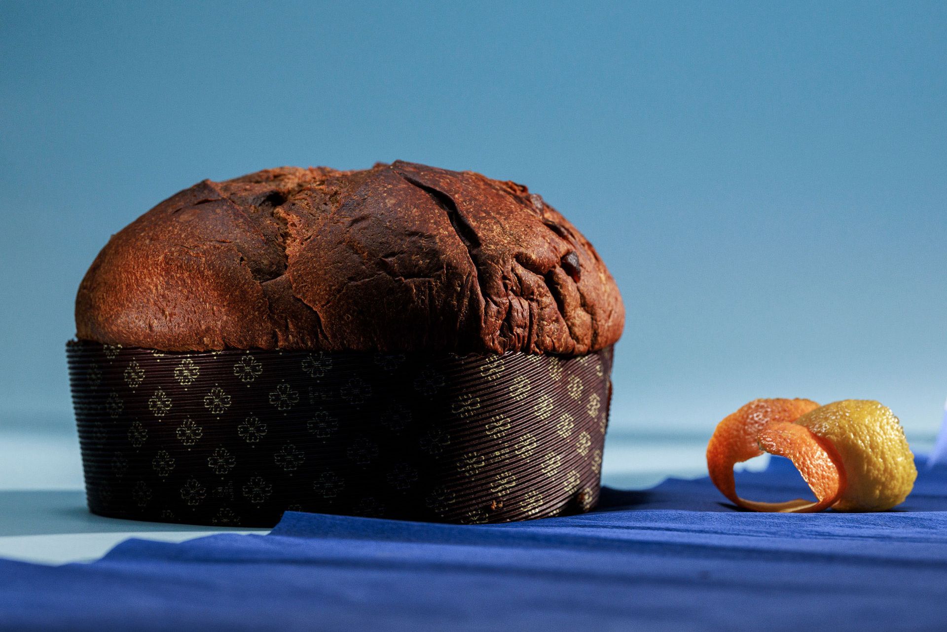 Panettone con Canditi d'arancia e uvetta aromatizzata ai vini “Marsala DOP” e “Terre Siciliane Zibibbo Liquoroso IGP”.